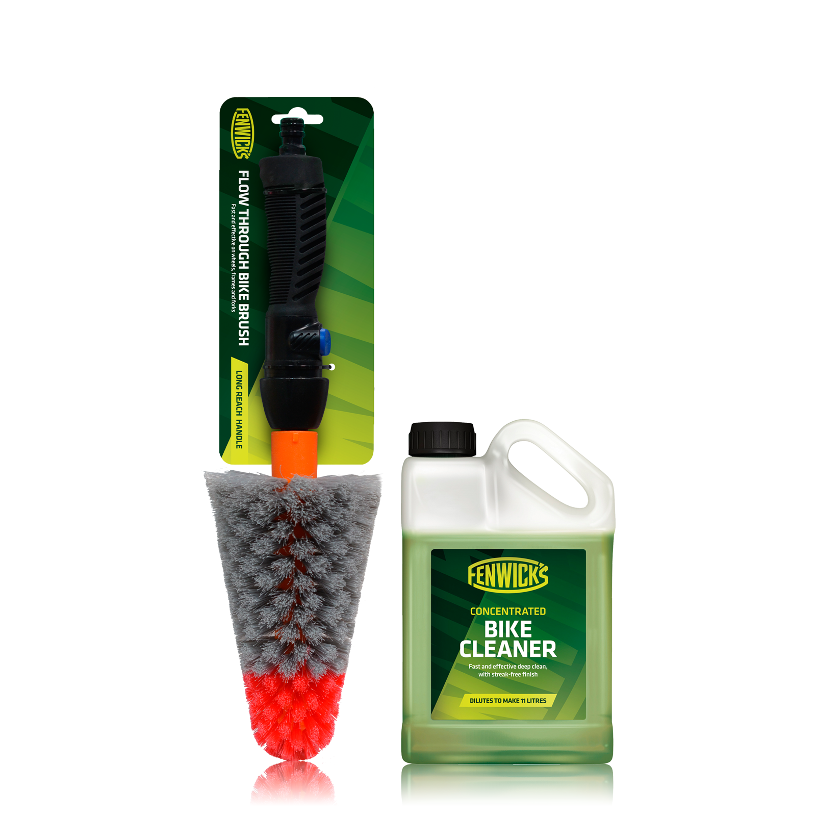 Zastosowanie Przepływowej szczotki do czyszczenia roweru – pierwszego składnika zestawu Fenwick's Smart Brush, to wyjątkowa alternatywa w stosunku do powszechnie stosowanych myjek wysokociśnieniowych – fatalnych w skutkach dla rowerowego ułożyskowania. Drugi składnik zestawu - Rowerowy koncentrat czyszczący, do rozcieńczenia z wodą powoduje, że w rezultacie uzyskujesz aż 12 litrów niepozostawiającego jakichkolwiek smug - Płynu do czyszczenia roweru.
