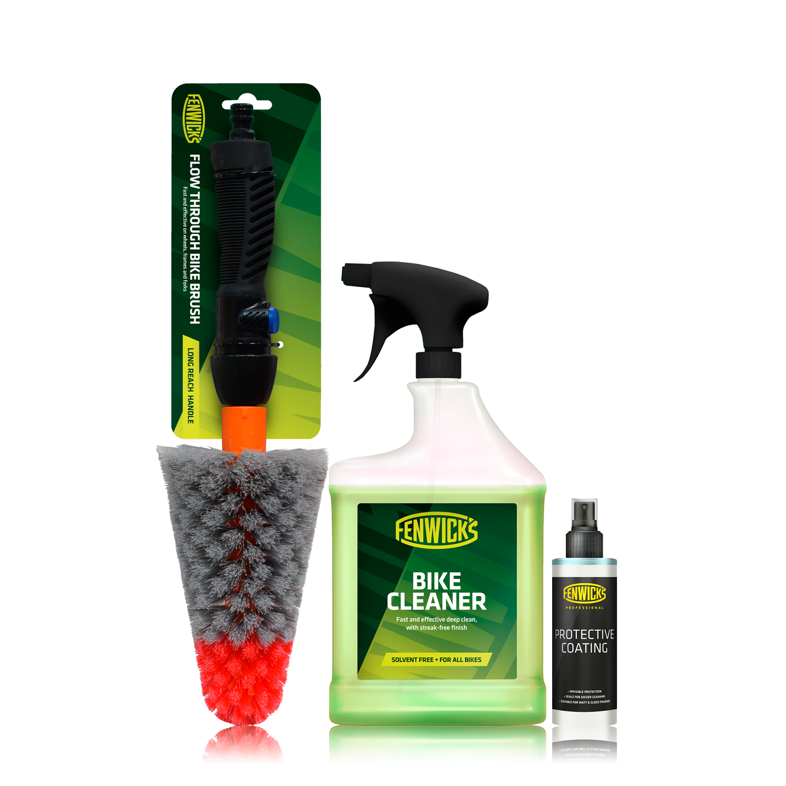 Zastosowanie Przepływowej szczotki do czyszczenia roweru – pierwszego składnika zestawu Fenwick's Smart Protect, to wyjątkowa alternatywa w stosunku do powszechnie stosowanych myjek wysokociśnieniowych – fatalnych w skutkach dla rowerowego ułożyskowania. Decydując się na zestaw Fenwick's Smart Protect, otrzymujesz również niepozostawiający jakichkolwiek smug - Płyn do czyszczenia roweru oraz Profesjonalny płyn ochronny, zabezpieczający powierzchnię ramy rowerowej, ułatwiając proces kolejnego czyszczenia.