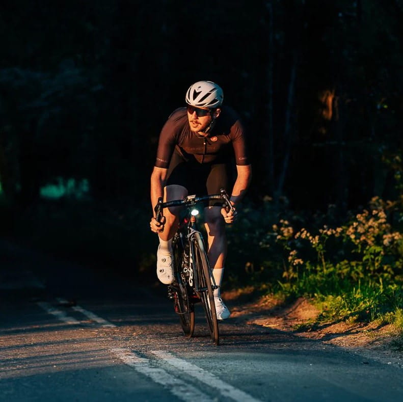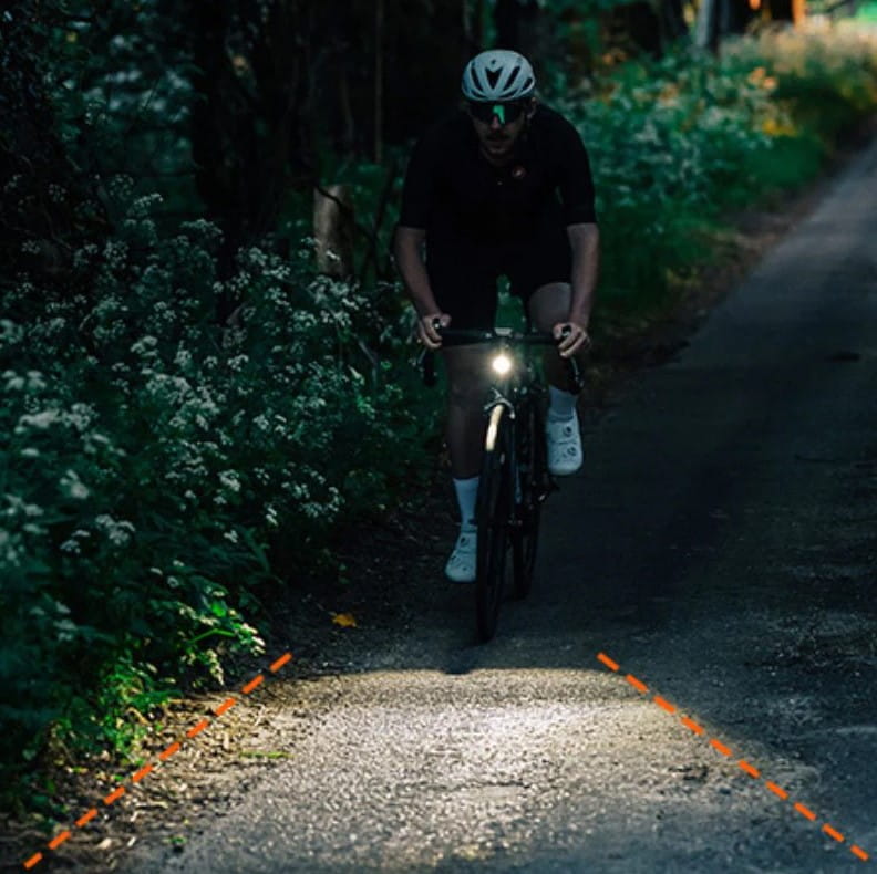 Precyzyjnie skalibrowane światła mijania świecą wyraźną linią odcięcia, kierując światło bezpośrednio na drogę przed rowerzystą zapobiegając ryzyku oślepienia nadjeżdżających użytkowników drogi.