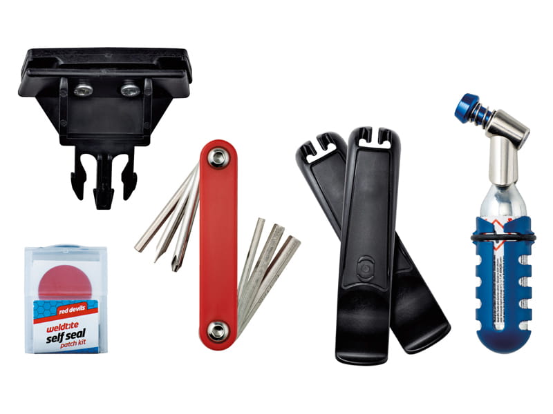 Łatki do dętek zestaw WELDTITE WEDGE BAG REPAIR + INFLATOR KIT + łyżki do opon EZYTECH + MULTITOOL