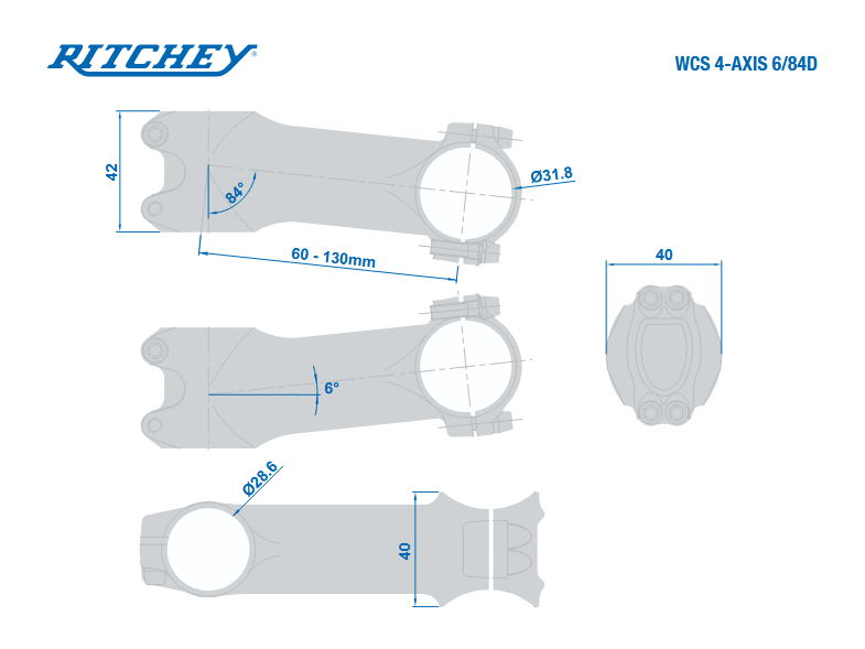 Mostek Ritchey WCS 4-Axis 6° 1-1/8" 31.8mm 60-130mm
