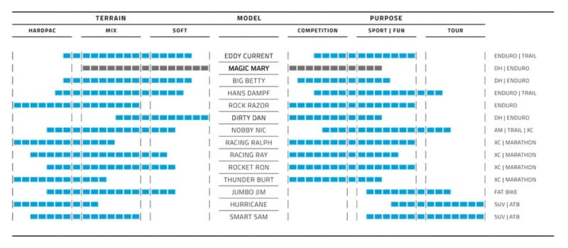 XC, AM and TRAIL, ENDURO i DOWNHILL. Opony z mieszanką ADDIX można łatwo rozpoznać po logo na boku opony i kolorowym pasku na bieżniku.