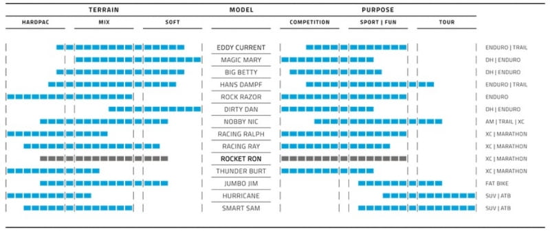 XC, AM and TRAIL, ENDURO i DOWNHILL. Opony z mieszanką ADDIX można łatwo rozpoznać po logo na boku opony i kolorowym pasku na bieżniku.