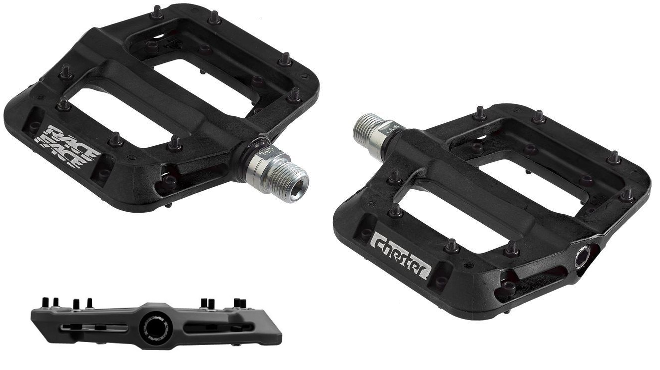 Race Face Ride to platformy zaprojektowane z myślą o przyszłych i początkujących jeźdźcach. Pedał Ride ma wytrzymałą nylonową obudowę z 18 profilowanymi pinami trakcyjnymi, aby zapewnić solidne oparcie, a jednocześnie być łagodniejszym dla nóg podczas uderzeń.