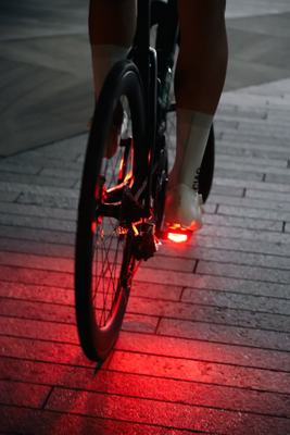 Zestaw obejmuje dwie kompaktowe, wodoszczelne lampki Vision (IP67), generujące do 60 lumenów światła w zakresie 180°, znacząco zwiększające widoczność rowerzysty. Badania wykazały, że światła montowane na pedałach czynią rowerzystę 5,5× bardziej widocznym niż światło na sztycy. Lampki oferują cztery tryby pracy i do 40 godzin działania, z szybkim ładowaniem USB-C (2 h). Aerodynamiczny profil pedłów i niska masa (155 g za ½ pary z lampką) czynią je lekkim i funkcjonalnym rozwiązaniem do treningu oraz codziennej jazdy.