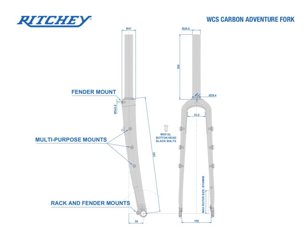- Nowy widelec Ritchey z mocowaniem uniwersalnym, bagażnika i błotników