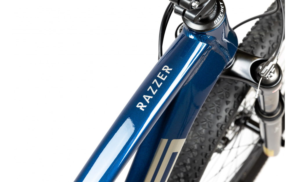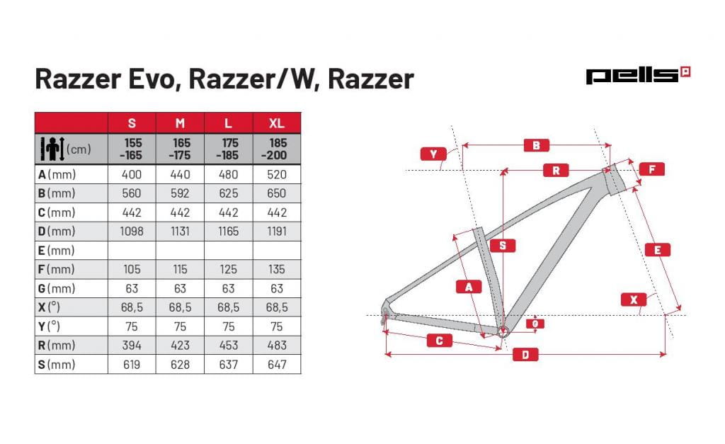 Model PELLS Razzer to świetne połączenie sprzętu do codziennego użytku. Rama o nowoczesnej geometrii zapewnia doskonałą sztywność przy minimalnych stratach energii przy zachowaniu niskiej wagi. Rower w połączeniu z kołami 29" doskonale pokonuje przeszkody, jest zwinny i szybki. Model wyposażono w wysokiej jakości osprzęt w postaci widelca amortyzowanego SR Suntour XCR32 100 mm, napęd Shimano Deore 1x112 mocne hamulce Shimano BL-MT200 oraz opony Continental Race King.