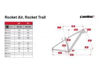 Rocket Air to mniejsza wersja dorosłego Razzera, która w porównaniu z modelem Rocket Lite jest wyposażona w pneumatyczny widelec SUNTOUR, którego zawieszenie można regulować w zależności od wagi dziecka. To czyni go nie tylko środkiem transportu, ale także potężną maszyną dla małych rajdowców. Oprócz lekkiej aluminiowej ramy, zapewniającej łatwą obsługę i kontrolę, ma hydrauliczne hamulce tarczowe, które zapewniają dziecku bezpieczeństwo podczas szybkich przejażdżek i zjazdów. Geometria koła odzwierciedla wtedy proporcje dzieci, zapewniając lepszą stabilność. Rocket Air 24" to dziecięcy rower z ciekawą manetką MICROSHIFT Acolyte 1x8s, która wyposażona jest w ogranicznik na przerzutce zapobiegający stukaniu i wypadaniu łańcucha podczas jazdy w bardziej wymagającym terenie. Hamulce to hydrauliczne TEKTRO w wersji junior. Zamontowane opony to SCHWALBE Rocket Ron o szerokości 2,1 cala ze składaną stopką z kevlaru, co zapewnia niską wagę.