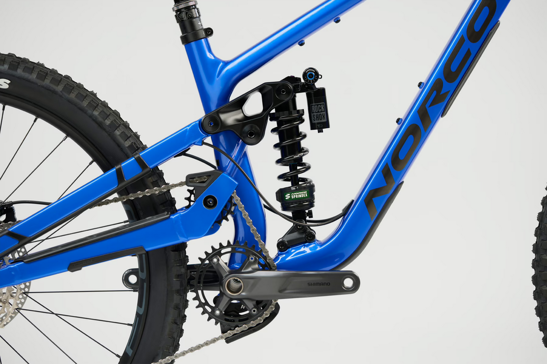 NORCO Sight to wytrzymała maszyna all-mountain, która zmaksymalizuje Twoją pewność siebie w terenie i podczas skoków. NORCO Sight został wyposażony w nowy system zawieszenia High Pivot Horst Link. Zasadniczo High Pivot działa w taki sposób, że tor oznaczony przez tylne koło podczas uderzenia w przeszkodę i wjazdu na wzniesienie jest ukośnie do tyłu. Dzięki temu rower znacznie lepiej „wygładza” teren i utrzymuje znacznie większą prędkość na nierównych odcinkach. Dzięki rolce bloczkowej wyeliminowano również odbicie w pedałach, tzw. kickback. Od 2024 roku system High Pivot Horst Link jest stosowany w modelach z niecentryczną rolką bloczkową, która nie znajduje się w osi głównej osi obrotu. Każdy model roweru ma specyficzną konstrukcję koła pasowego, zależną od tego, jak aktywne jest zawieszenie podczas pedałowania.