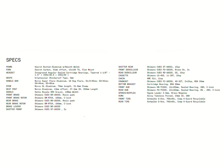 - Korby: Shimano GRX FC-RX610, 46-30T, 2x12spd, BSA 24mm , S1/2/3/4=170; S5=172.5