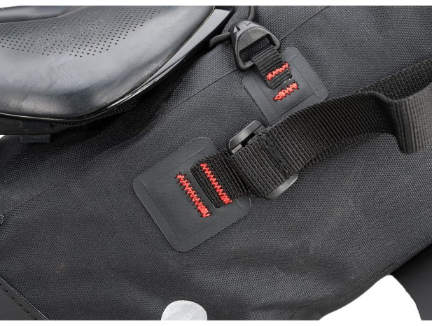 Nasze nowe torby podsiodłowe są w całości wykonane z Nylonu 600D i Hypalonu. Posiadają również uszczelnione szwy, zgrzewane przy użyciu wysokiej częstotliwości. Nylon 600D jest całkowicie wodoodporny i posiada zewnętrzną powłokę PU (poliuretan), która odpycha wodę i sprawia, że torba szybko schnie w kontakcie z powietrzem. Torby posiadają również powłokę TPU (Thermoplastic Polyurethane), która wraz z uszczelnionymi szwami sprawia, że torby są całkowicie wodoszczelne. Torby podsiodłowe mocuje się do roweru za pomocą dwóch przeprojektowanych pasków z rzepami. Dwa szerokie paski z rzepem, wzmocnione Hypalonem, mocuje się do sztycy podsiodłowej, a dwa kolejne mocuje się do szyn siodełka. Te ostatnie są wyposażone w wytrzymałe ściągacze YKK, które umożliwiają lepszy i mocniejszy zacisk. Dzięki temu torba jest zawsze dobrze przymocowana.