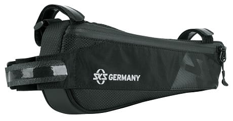 Torebka pod ramę SKS Racer Edge / system szybkiego montażu do ramy paskami na rzepy / wytrzymały materiał z gumowanej, wodoodpornej tkaniny / elementy odblaskowe / laminowany zamek z ergonomicznym, łatwym do zapinania zamkiem / rozmiar 250x40x90 mm / 600 ml / 124 g / czarna