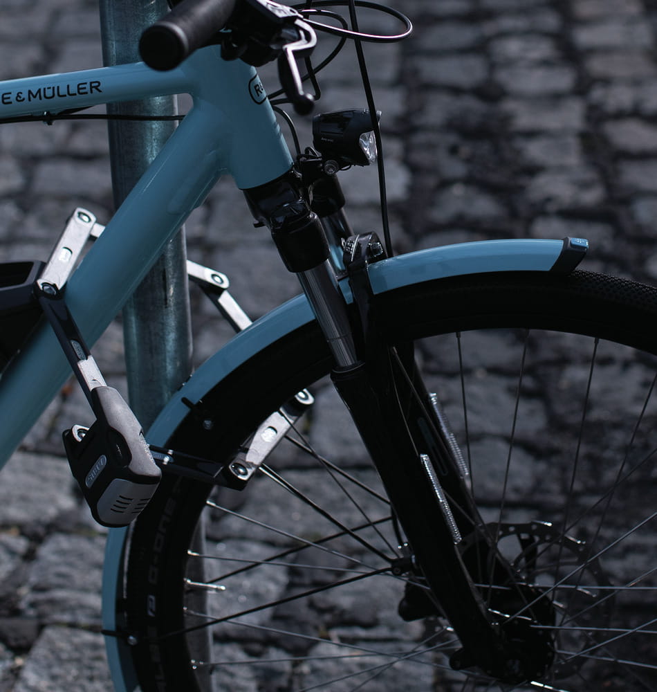 SH - uchwyt na zapięcie ułatwiający transport na rowerze, który można zamontować bez użycia narzędzi dzięki praktycznym paskom mocującym. Zapięcie jest wyjmowane z uchwytu od przodu.